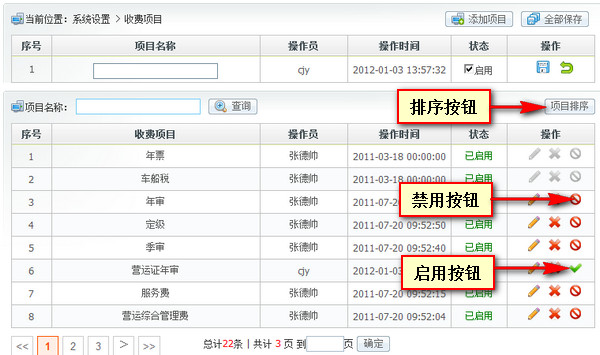 如果你要对管理的车辆进行收费,你必须设立收费项目,你可以对收费项目禁用或启用,如下图: