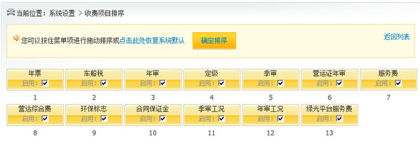 同时你可对收费项目进行排序,点击右上角的排序按钮,进行相关操作后,会达到你满意的排序效果,如下图: