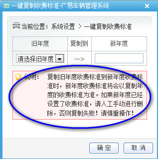 的收费标准设立后,用户不需要再一个项目一个项目设立,如果与上一年相同,我们可以使用一键复制功能,
